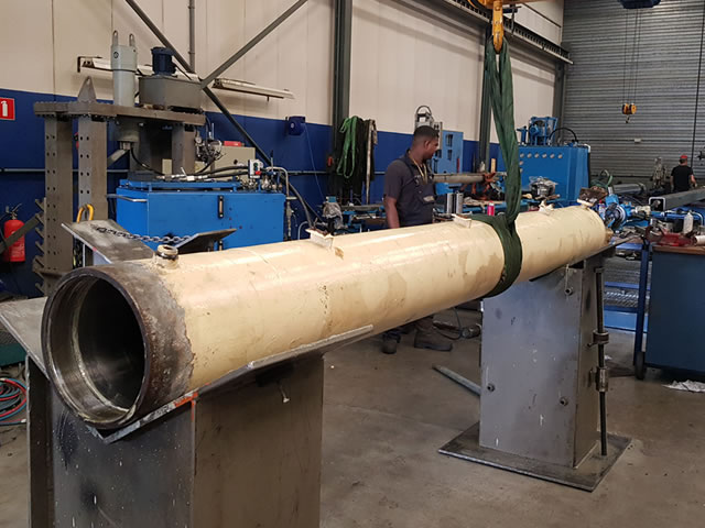 Operations such as turning, boring, welding, but also testing, are carried out in house. Our field service department takes care of tracking down faults, removing and reinstalling cylinders on site. A number of specialists operate both in house and in the field, so that knowledge and knowhow are optimally distributed and deployed.
