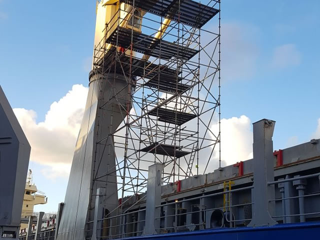 The supply and provision of construction work is part of our day-to-day work. This can range from repairing a section of shell plating or a hatch to replacing a piece of coaming. We also design, deliver and place new wheel housings for cranes, consoles, ship’s hatches, new cranes or steel constructions for the placement of objects on deck.